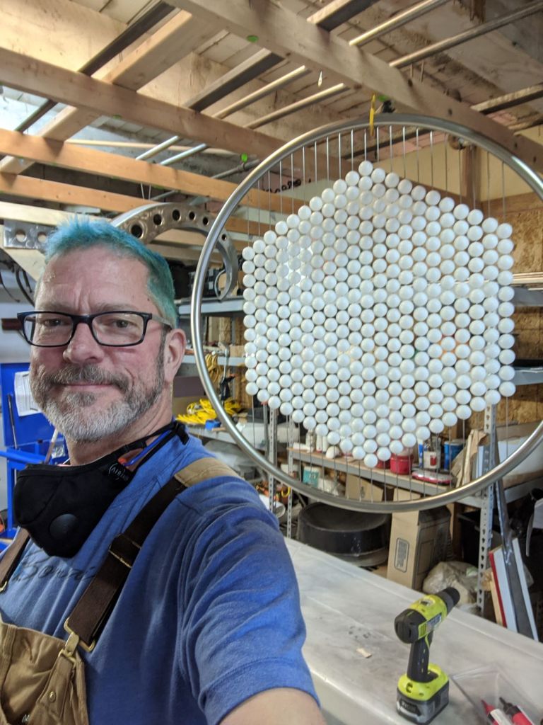 Sphexora Posted byoctoeyesApril 30, 2020January 30, 2021Posted inSculpture, Work in Progress Sphexora – scultpure/screen for projection mapping. Inspired by wasps and ancient imagery. Main screen finished! 331 ping pong balls Share this: Click to share on X (Opens in new window) X Click to share on Facebook (Opens in new window) Facebook Click to email a link to a friend (Opens in new window) Email Like Loading... Related